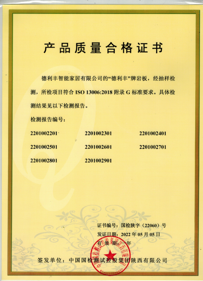 集團坐擁30000㎡CBD辦公大樓,50萬㎡智能智造生產(chǎn)基地,1350米綠色巖板生產(chǎn)線;全套進口巖板生產(chǎn)設(shè)備,同步超3萬噸位意大利壓機與16通道高清噴墨打印機等國際一流專業(yè)設(shè)備。依托R&D中心,從產(chǎn)品原料、生產(chǎn)、加工、儲存運輸?shù)拳h(huán)節(jié)皆采用網(wǎng)絡(luò)化、智能化、數(shù)字化監(jiān)控管理系統(tǒng)。產(chǎn)品經(jīng)國家、省、市質(zhì)檢部門抽檢均達到優(yōu)質(zhì)水平,并通過ISO9001質(zhì)量管理體系認(rèn)證。集團的強大生產(chǎn)實力確保了德利豐巖板高品質(zhì)產(chǎn)能和性能,并帶領(lǐng)德利豐家居走向規(guī)模化高速發(fā)展道路。